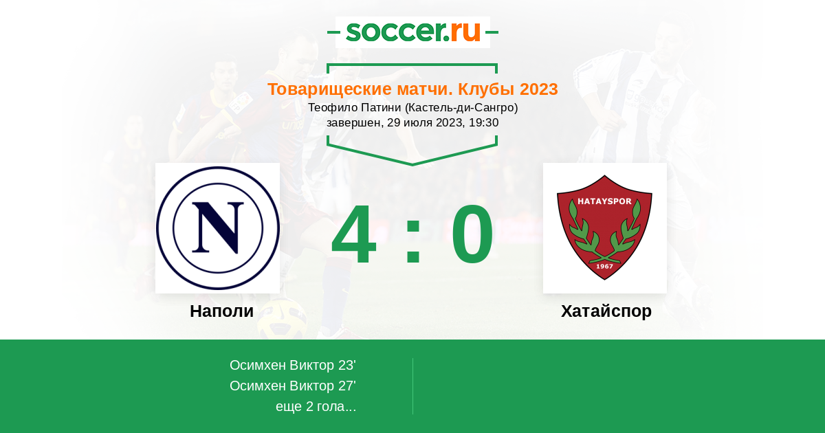 Протокол матча Наполи против Хатайспор