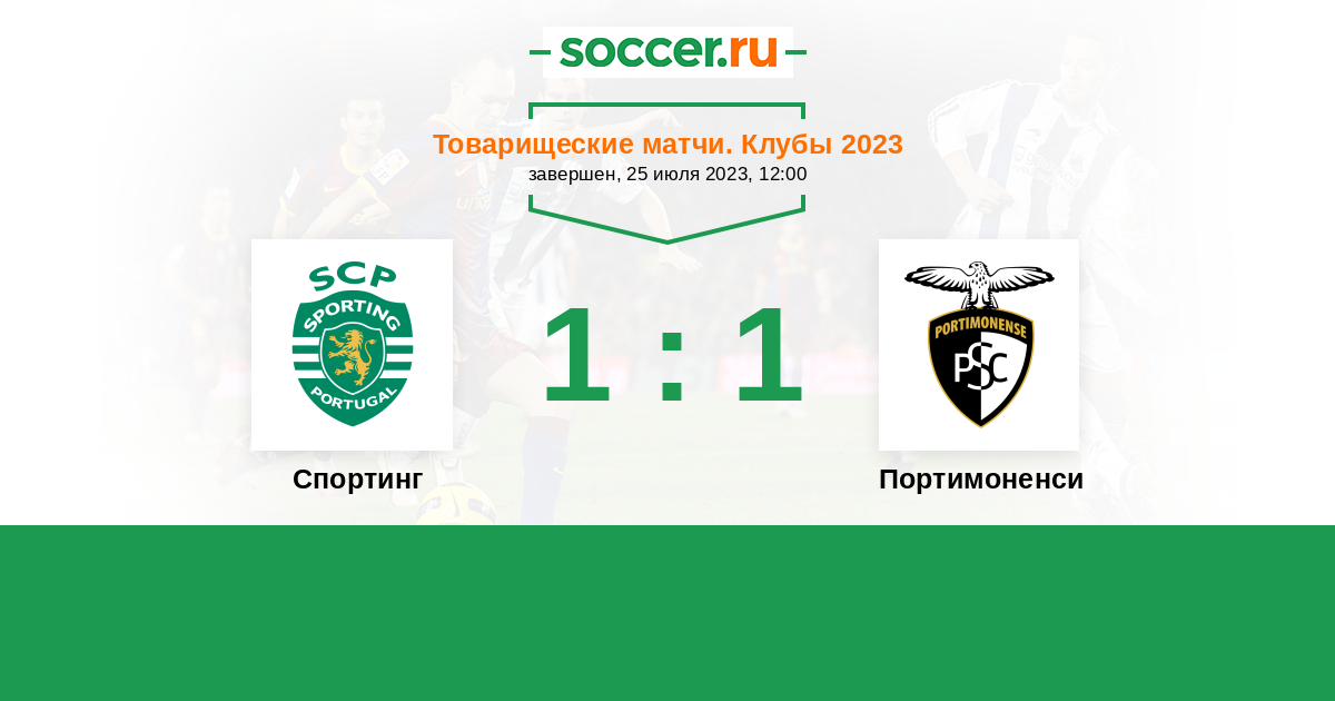 Товарищеские матчи. Клубы 14.07.2021 Спортинг Логотип футбольный клуб Спортинг (Лиссабон) 2:2 Логотип футбольный клуб Портимоненси (Портиман) Портимоненси