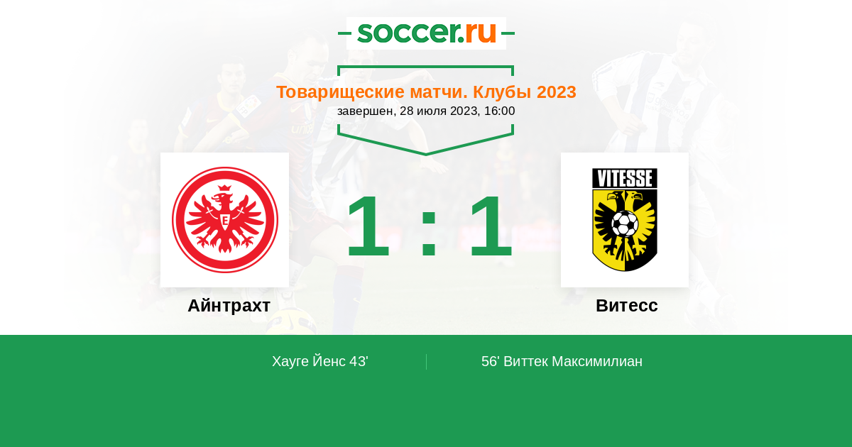 Протокол матча Айнтрахт против Витесс