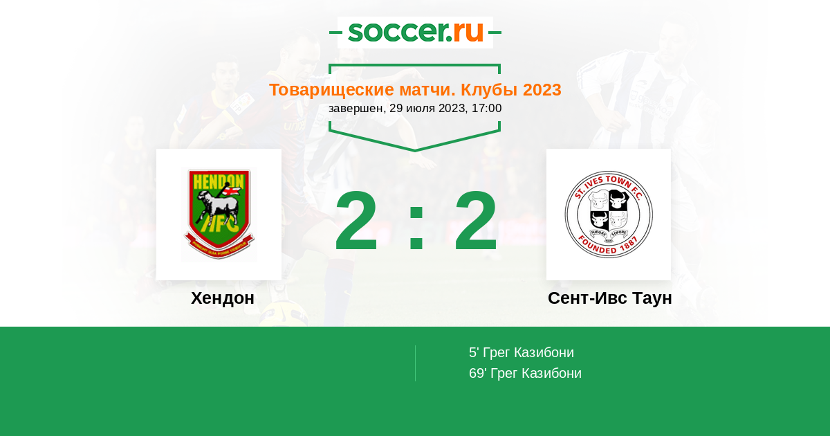 Протокол матча Хендон против Сент-Ивс Таун