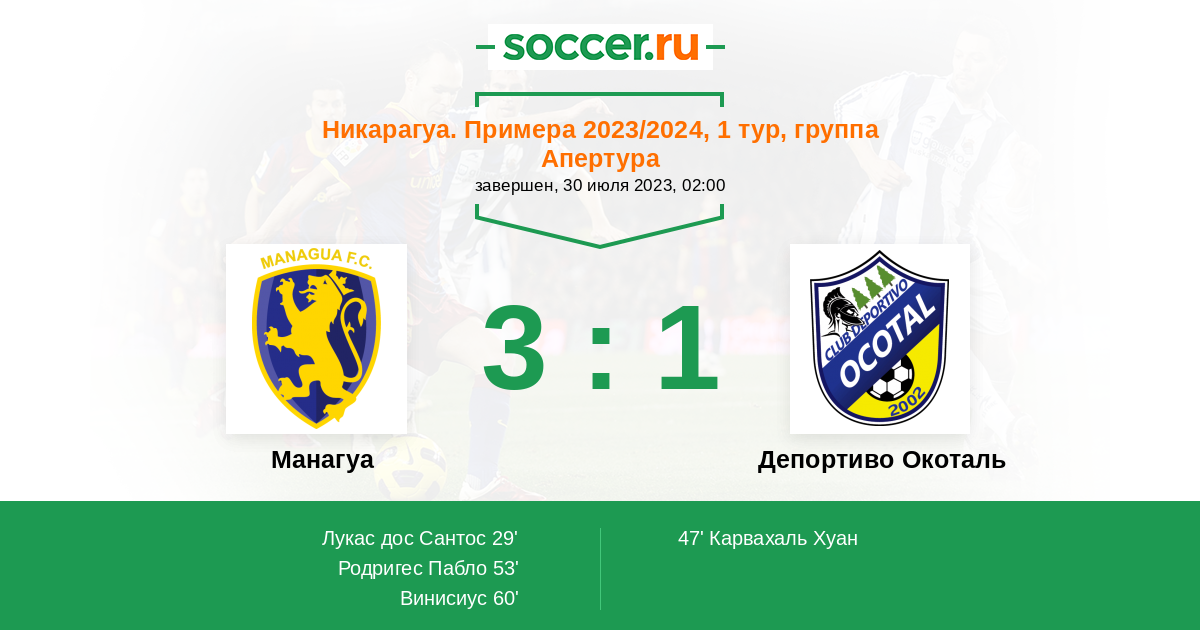 В предстоящем матче 1 - го тура Примеры Никарагуа между командами Манагуа и Депортиво Окоталь, более чем явным фаворитом на победу является команда хозяев Манагуа, так как они играют дома.
