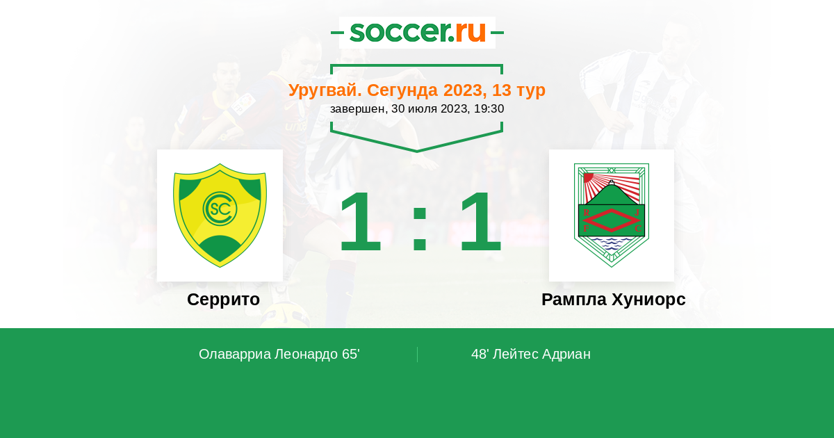 Протокол матча Серрито против Рампла Хуниорс