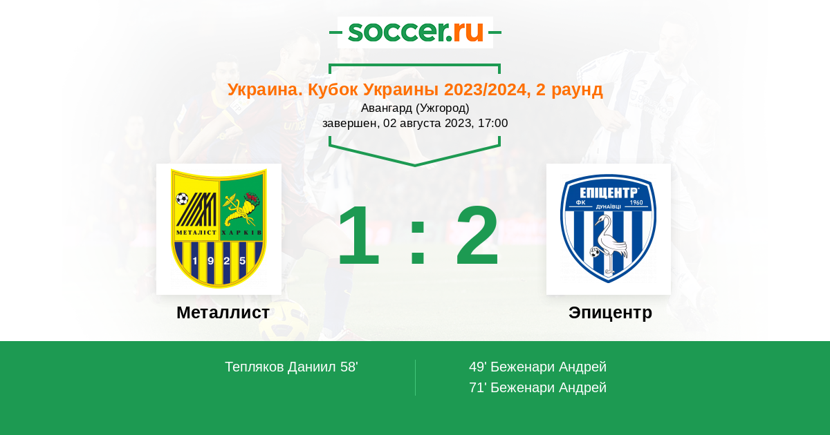 Протокол матча Металлист против Эпицентр