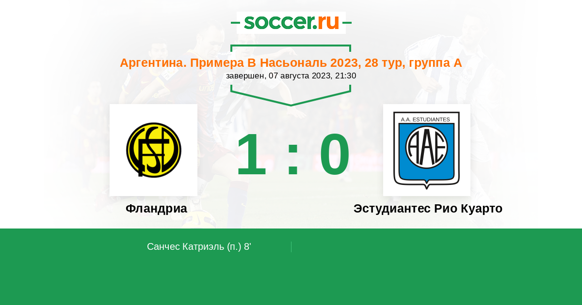 Протокол матча Фландриа против Эстудиантес Рио Куарто