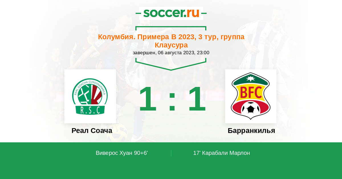 Протокол матча Реал Соача против Барранкилья