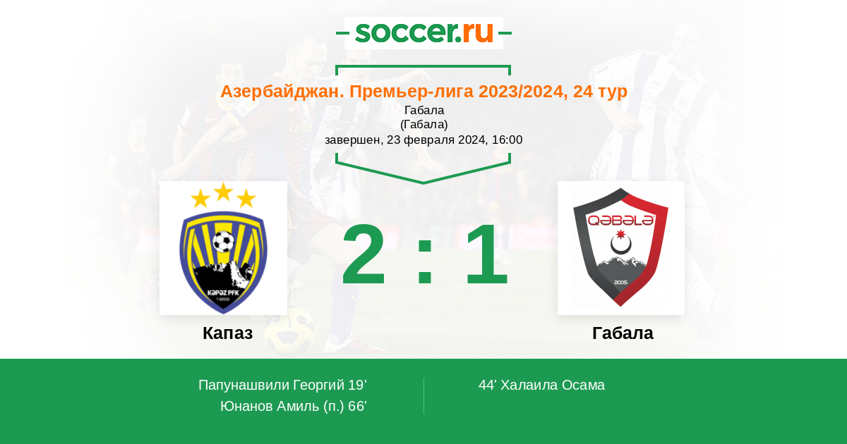 Протокол матча Кяпаз против Габала