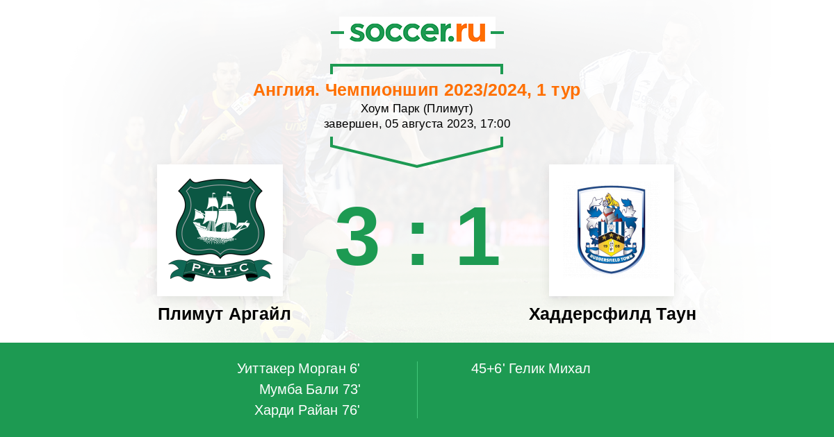 Протокол матча Плимут Аргайл против Хаддерсфилд Таун