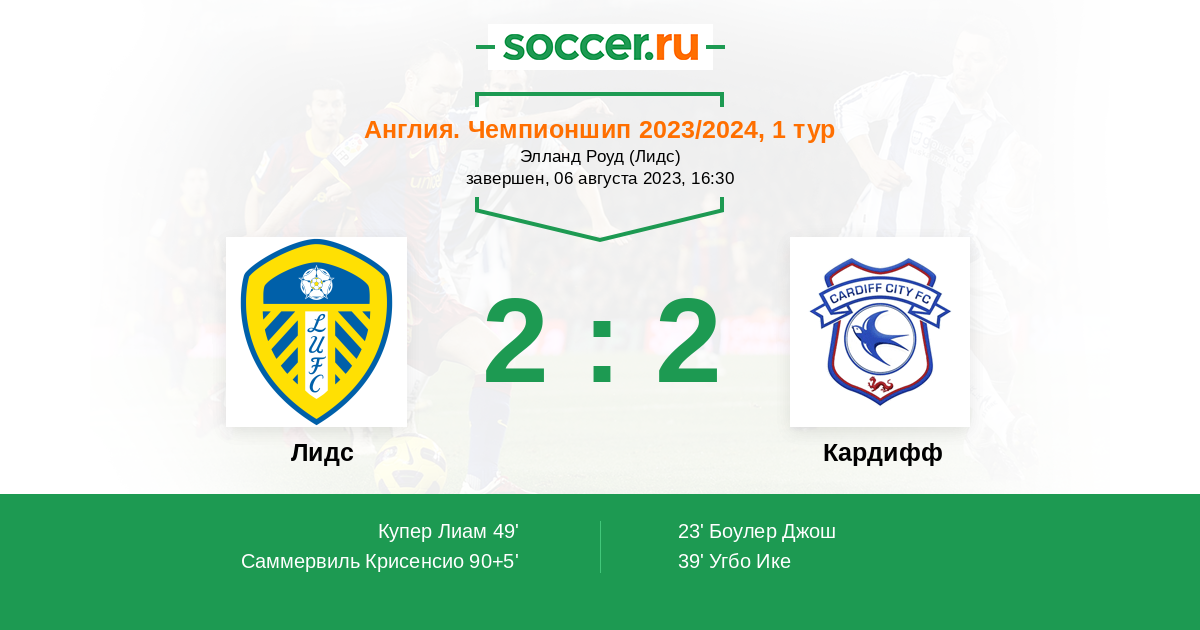 Протокол матча Лидс против Кардифф