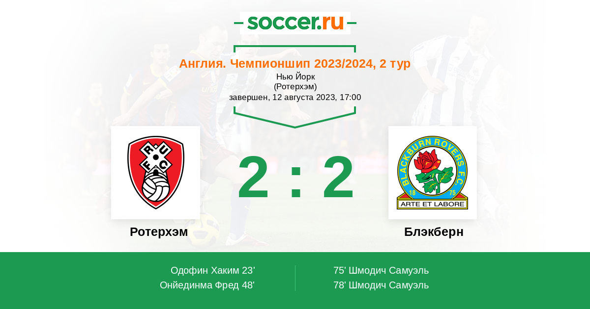 Протокол матча Ротерхэм против Блэкберн