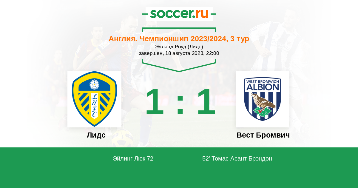Протокол матча Лидс против Вест Бромвич