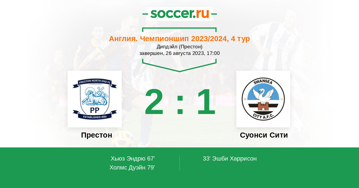 Протокол матча Престон против Суонси Сити