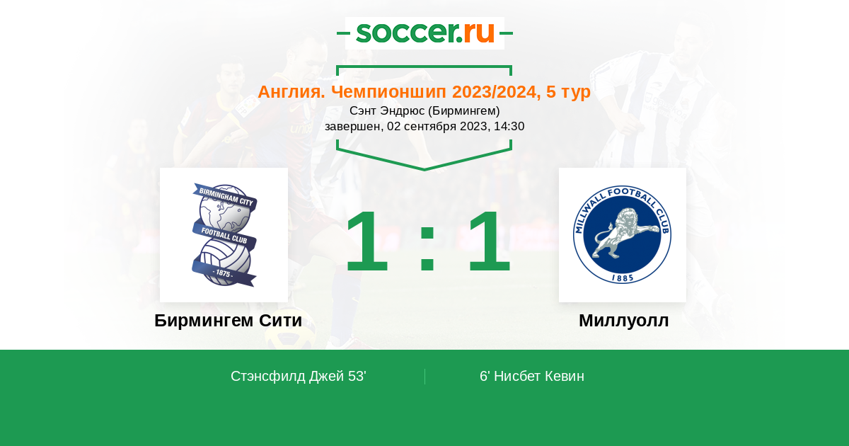 Протокол матча Бирмингем Сити против Миллуолл