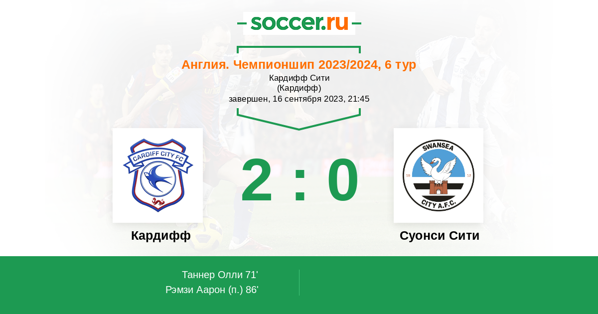 Протокол матча Кардифф против Суонси Сити