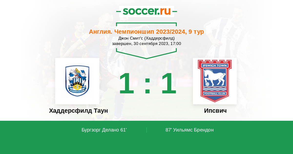Протокол матча Хаддерсфилд Таун против Ипсвич