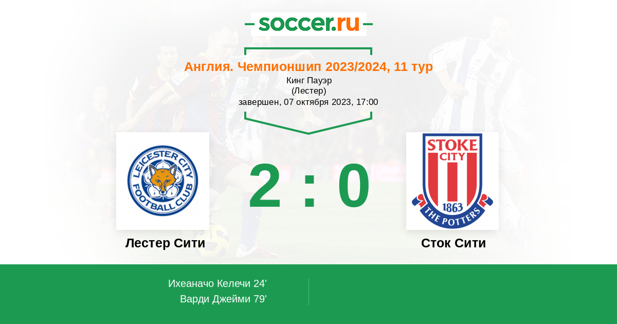 Протокол матча Лестер Сити против Сток Сити