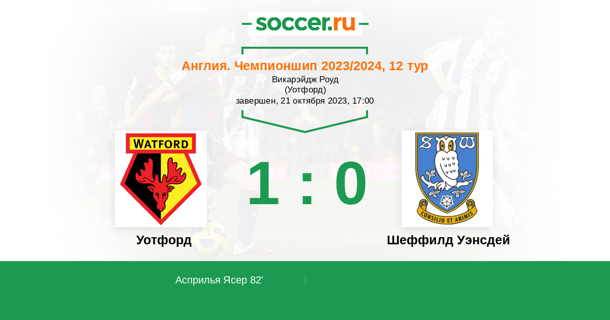 Протокол матча Уотфорд против Шеффилд Уэнсдей
