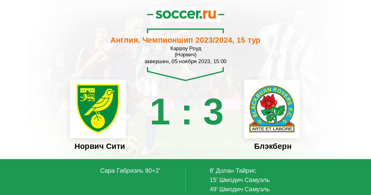 Протокол матча Норвич Сити против Блэкберн