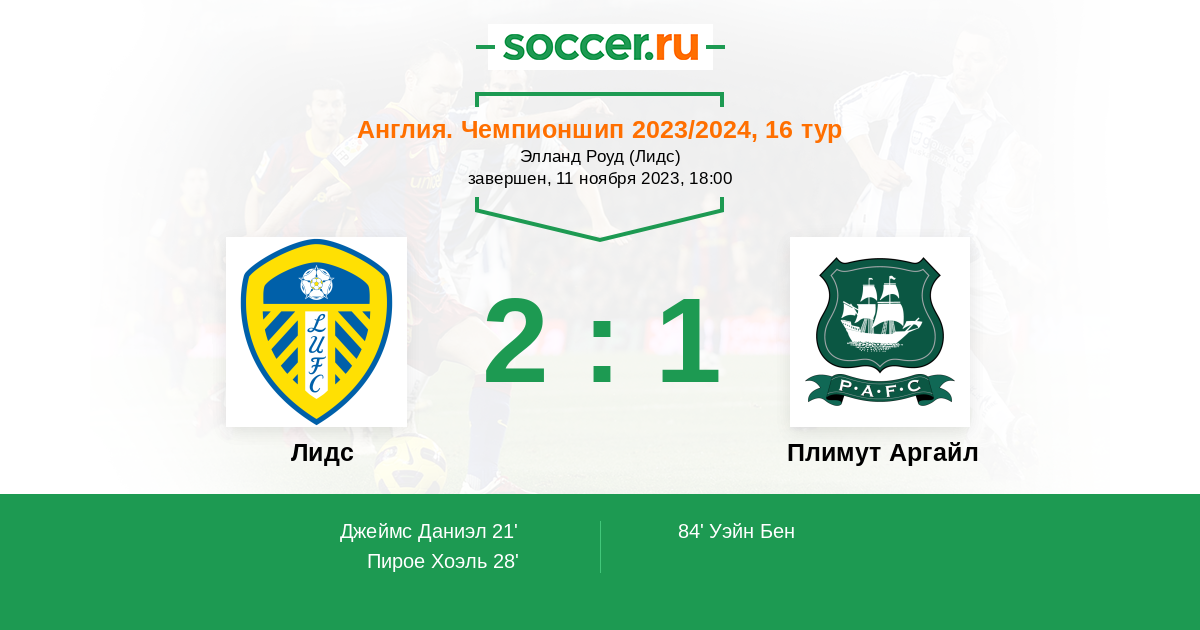 В матче между командами Лидс и Плимут Аргайл думаю зрителям не придётся скучать, потому как обе команды играют в атакующий футбол, а их поддержка скажется на результате в пользу хозяев.