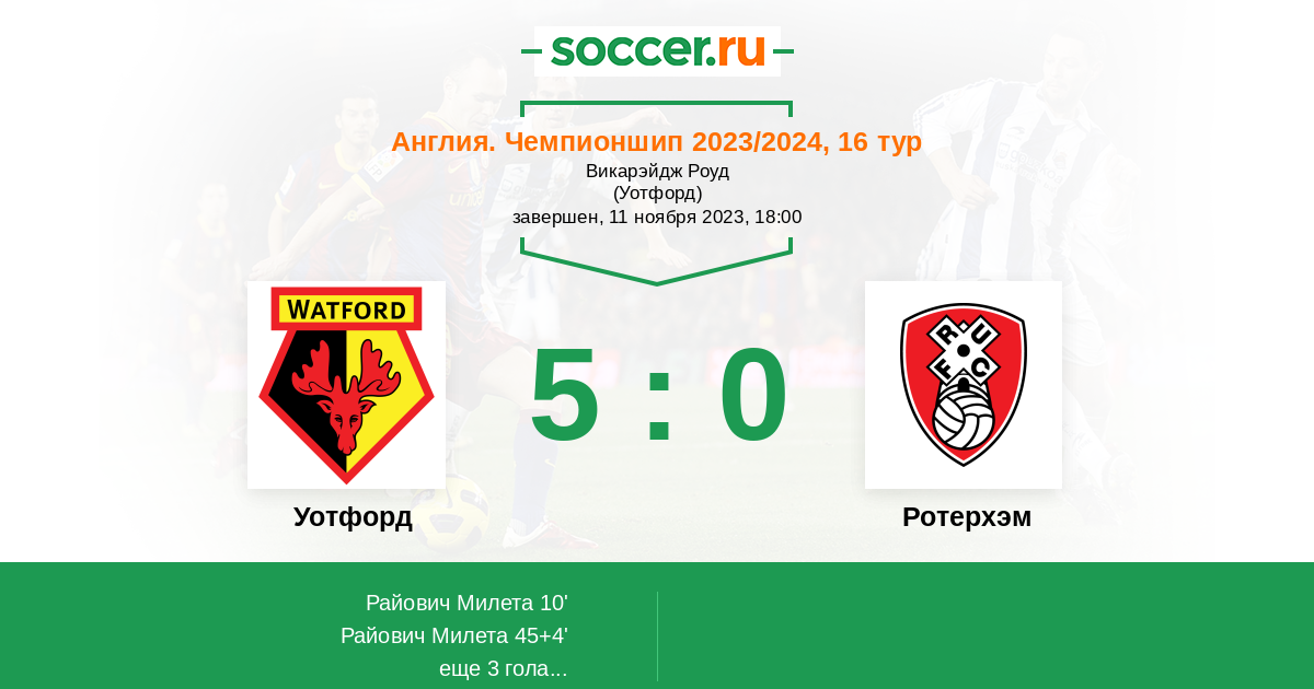 Протокол матча Уотфорд против Ротерхэм