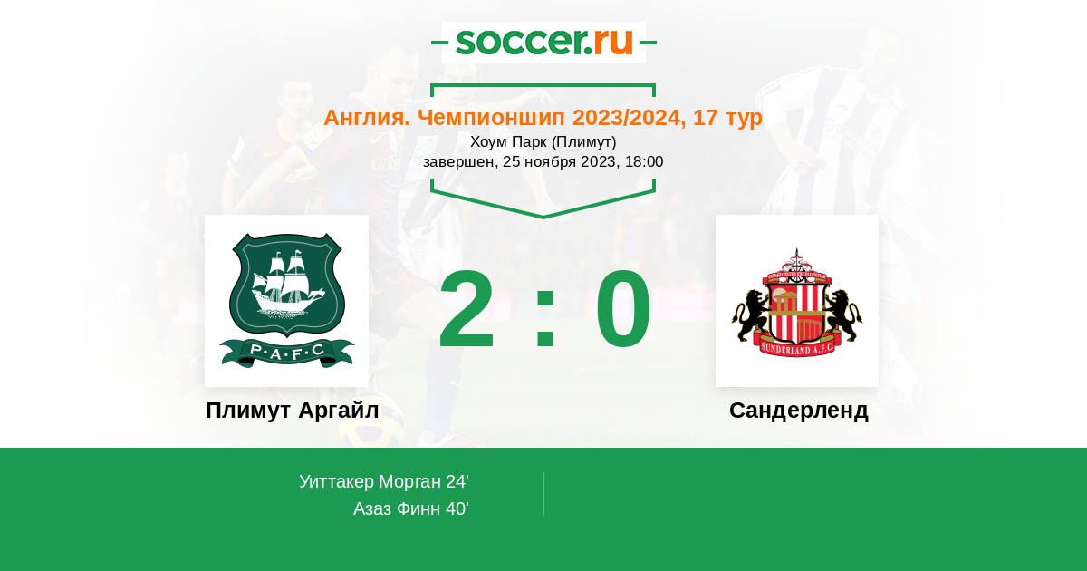 Протокол матча Плимут Аргайл против Сандерленд