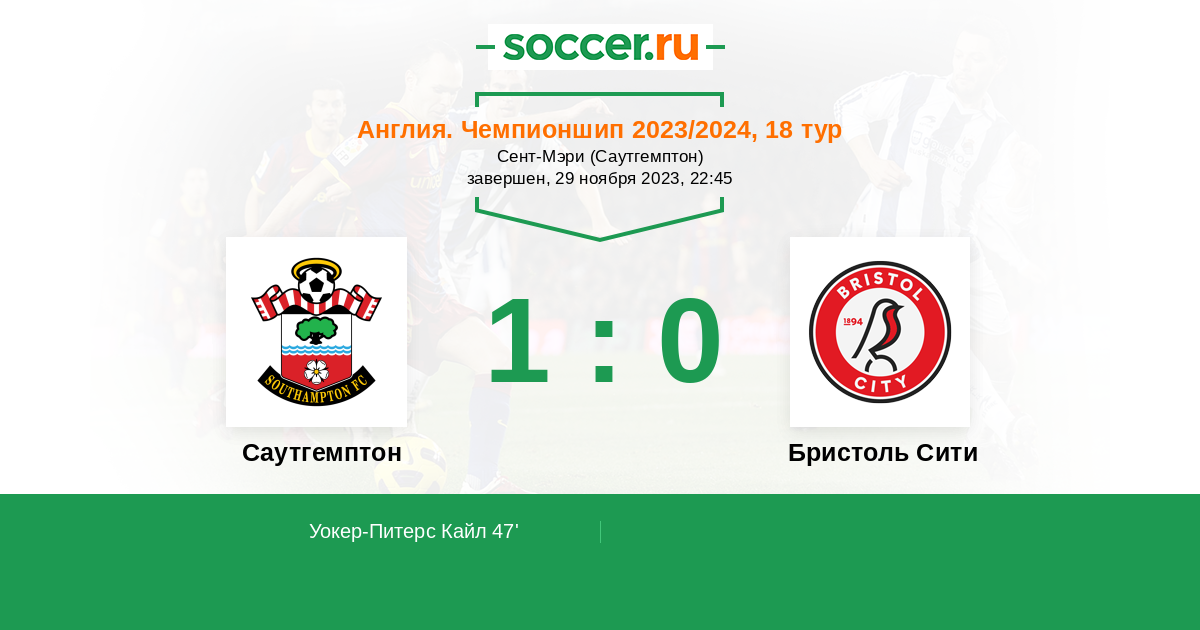 Протокол матча Саутгемптон против Бристоль Сити