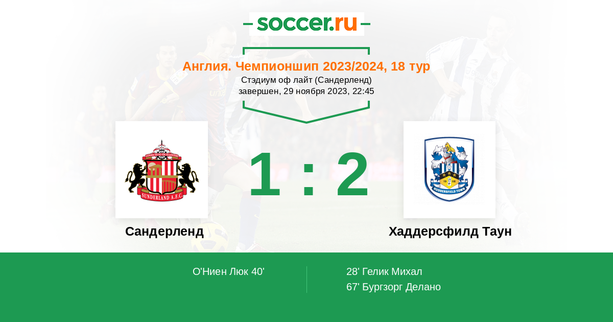 Протокол матча Сандерленд против Хаддерсфилд Таун
