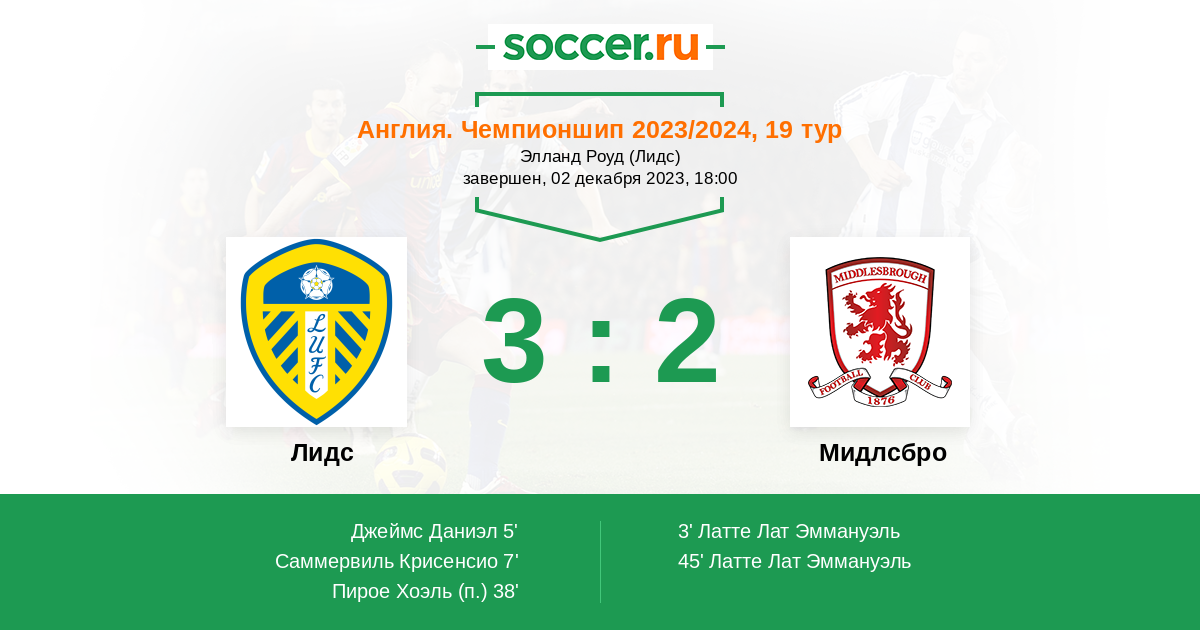 Протокол матча Лидс против Мидлсбро