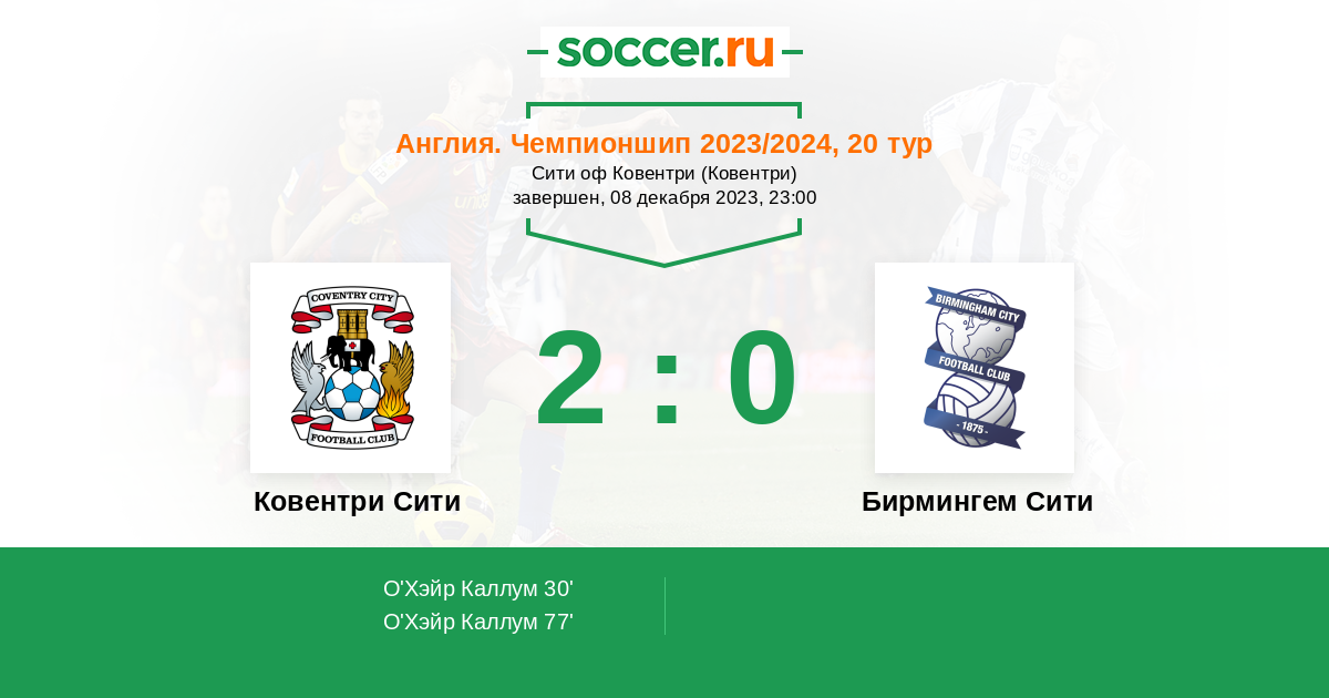 Протокол матча Ковентри Сити против Бирмингем Сити