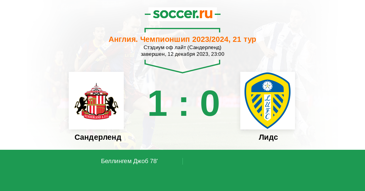 Протокол матча Сандерленд против Лидс