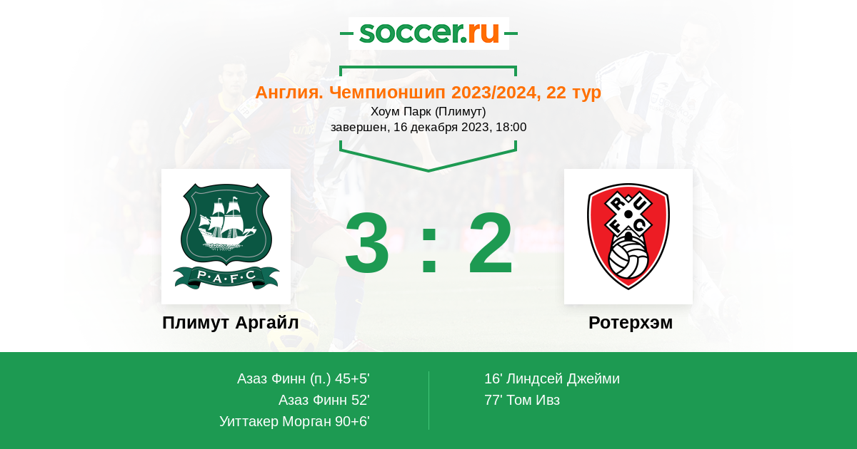 90+6' (3:2) Уиттакер Морган (10) (Азаз Финн (18))