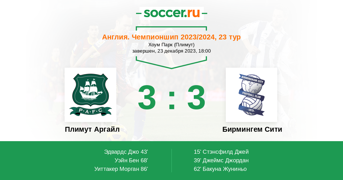 Протокол матча Плимут Аргайл против Бирмингем Сити