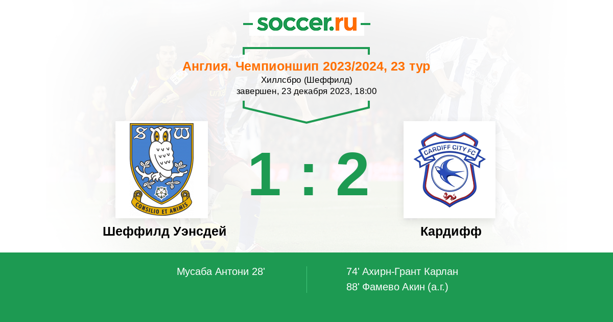 Протокол матча Шеффилд Уэнсдей против Кардифф