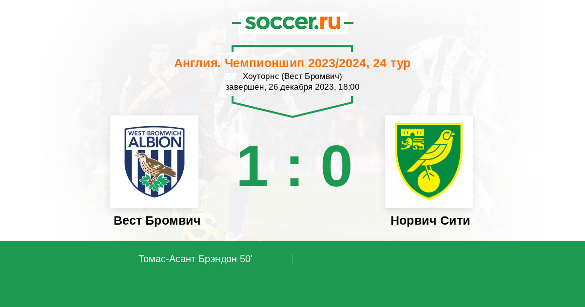 Протокол матча Вест Бромвич против Норвич Сити