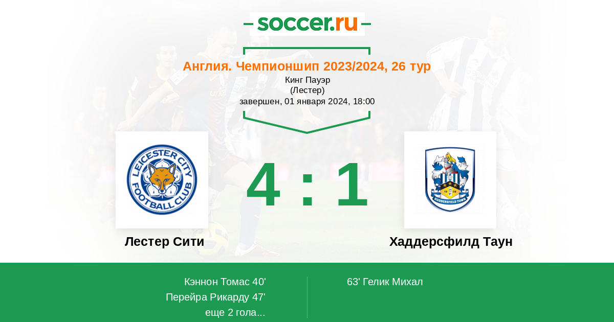 Протокол матча Лестер Сити против Хаддерсфилд Таун