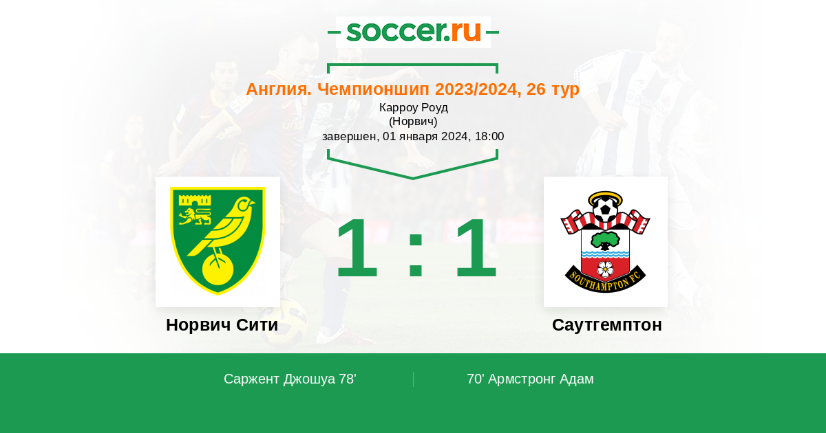 Протокол матча Норвич Сити против Саутгемптон