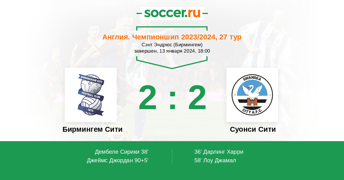 Протокол матча Бирмингем Сити против Суонси Сити