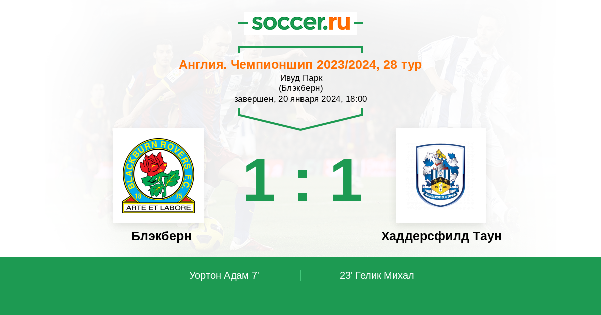 Протокол матча Блэкберн против Хаддерсфилд Таун