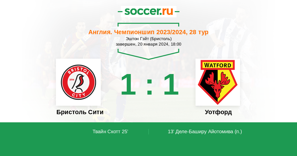 Протокол матча Бристоль Сити против Уотфорд