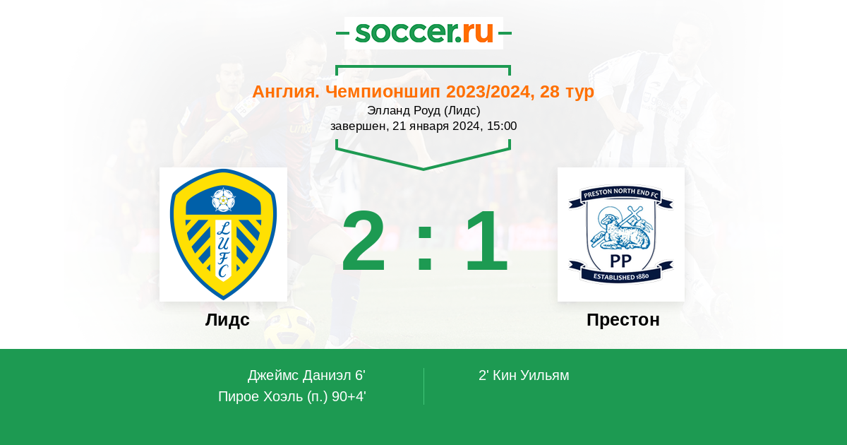 Протокол матча Лидс против Престон