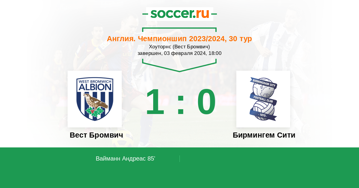 Протокол матча Вест Бромвич против Бирмингем Сити