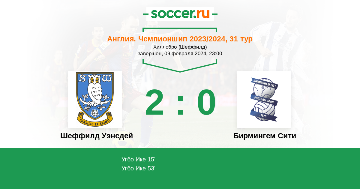 Протокол матча Шеффилд Уэнсдей против Бирмингем Сити