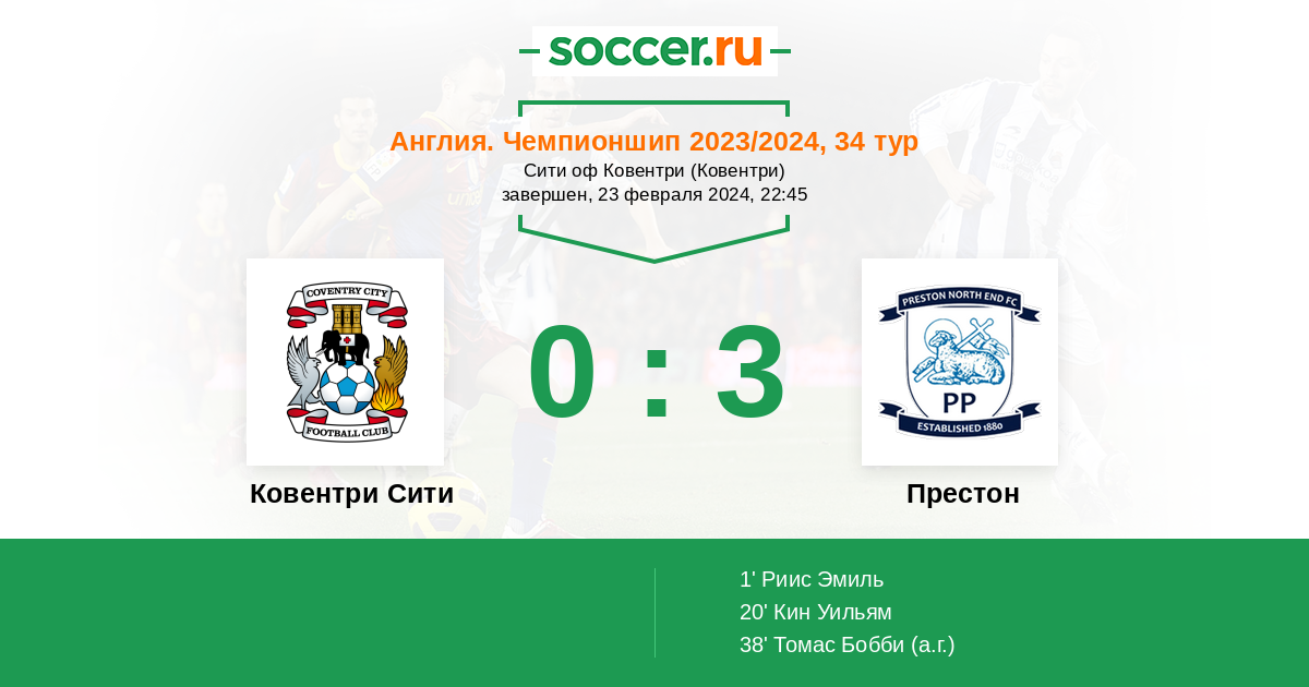 Протокол матча Ковентри Сити против Престон