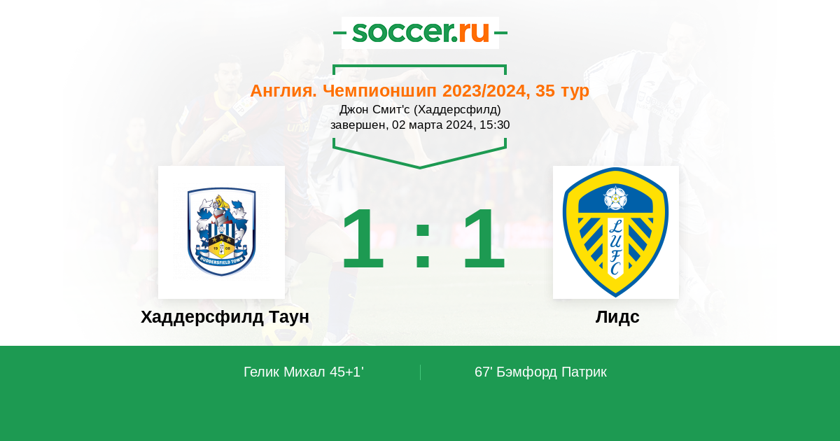 Протокол матча Хаддерсфилд Таун против Лидс