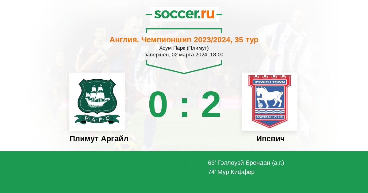 Протокол матча Плимут Аргайл против Ипсвич