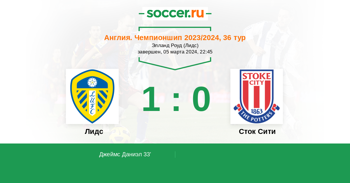 Протокол матча Лидс против Сток Сити