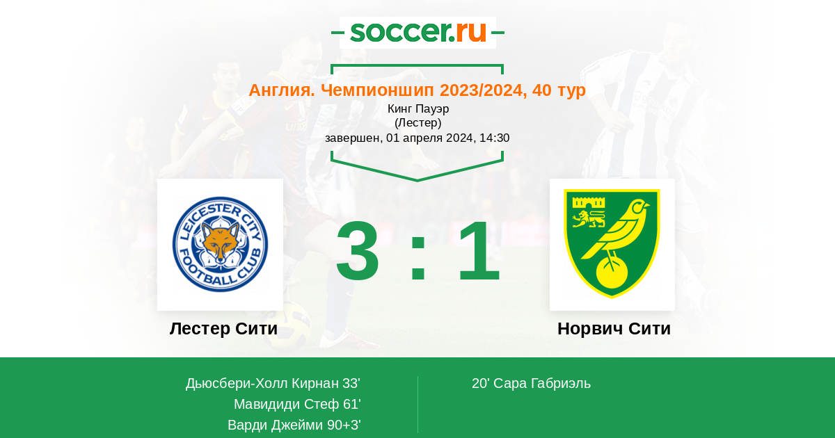 Протокол матча Лестер Сити против Норвич Сити