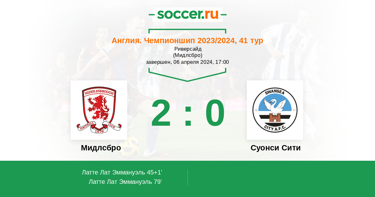 Протокол матча Мидлсбро против Суонси Сити