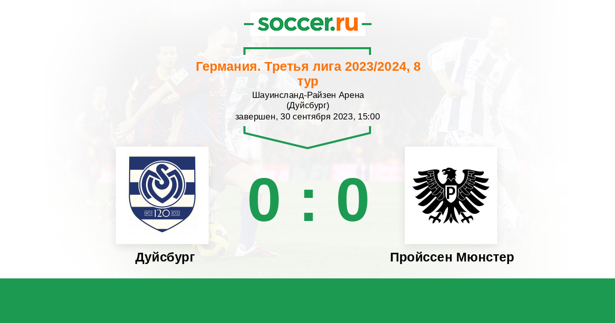 Протокол матча Дуйсбург против Пройcсен Мюнстер