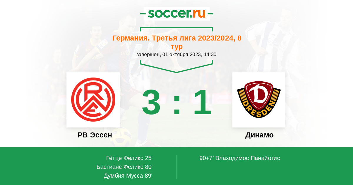 Протокол матча РВ Эссен против Динамо