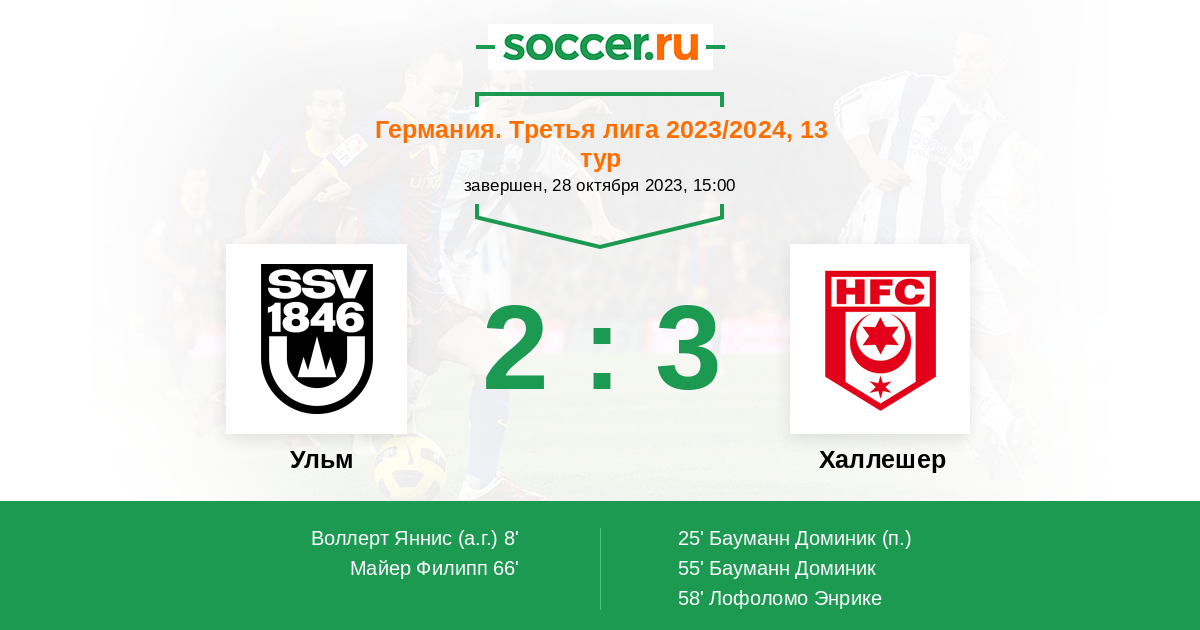 Протокол матча Ульм против Халлешер